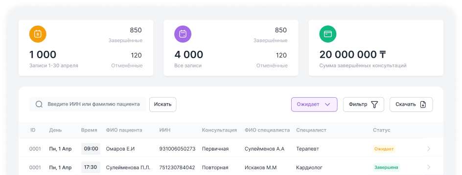 Прозрачная статистика приёмов в личном кабинете. Скачивайте отчет о записях за любой период